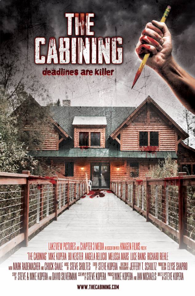 First off I want to say thankyou to the writers of the horror/comedy film “The Cabining”, Mike and Steve Kopera for sending me an online screener of the film. Mike is one of the stars of the film while his brother Steve is behind the camera directing this indie film. “The Cabining” is a story about best friends Todd and Bruce (played by Mike Kopera and Bo Keister), who are aspiring writers but lack the talent and originality needed to deliver a worthwhile script. Todd’s Uncle Sarge is a wealthy man offering to back the film if the boys can write something solid in two weeks, otherwise the money will go elsewhere. Bruce does some research on a secluded cabin called Shangri-La. It’s a retreat where various artists go in hopes of getting some inspiration for their work. Todd and Bruce pack their bags and head off with no plan B if things don’t work out. Shortly after they arrive, the other artists start dying in mysterious circumstances. Todd and Bruce must discover who is doing the dirty work otherwise they might be next!