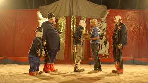 Now, How brutal is Circus Of The Dead??, I suppose it depends on what your comparisons are and how much you can take. Stephen King’s “IT”, has been sitting in my DVD rack, unwatched for about 10 years (haha). So the only comparison I have, is the Horror/Comedy, Clown film “Stitches”, which had some great gore but was all for comedic purposes, nothing more than shits and giggles. Nothing about Circus Of The Dead is giggly, except for maybe Noodledome (haha). Moving onto effects. Marcus Koch, who’s my favorite modern makeup and prosthetics artist, has worked on many of the B movie gems that I love. I don’t want to spoil any of the kills in COTD, but let’s just say you get an abundance of the red stuff. Once again though, this being as brutal as one would think, I still kind of expected more. It always impresses me when a filmmaker shows the attention to detail in aftermath shots, or shows as much as they can practically. I understand the film has to clear a rating, but I felt this could have been so much more brutal (think Ryan Nicholson’s “Gutterballs”. Although, the chainsaw in the last act was a nice touch, you have Marcus so please use him and never stop using him! (haha).