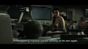 The way of life for citizens on the land is buying and selling goods and relics from the old world in exchange for money. People deal in various treasures, such as Michael Jackson’s “Dangerous” record, a teenage mutant ninja turtle figure and a plastic warrior sword crafted by Mattelo (supposedly used by an ancient warrior, yet we all know it’s a toy manufacturer). Idols like Stephen Hawking and Justin Bieber are revered and I’m not sure why? On the first plot point, what are the people then buying with the money they make? On one occasion Candy can be seen eating something but other than that no one ever drinks anything, nor are they seen buying anything, just selling, which I thought was a little strange. It begs the question if they’re not using money to purchase food or water for survival what’s it all for? When Candy meets Santa (yes you heard me right), he mentions something about wanting to get on the mysterious spaceship but it’s never made clear how one goes about doing that, Who to see or What to pay etc. Speaking of our random Santa, Why is Birdy hearing his voice traveling through the bowling alley’s conveyor belt? What message is being delivered each time a bowling ball comes back that clearly wasn’t bowled? Crumbs raises so many questions and gives few answers, if you think it sounds incoherent it’s because it is.