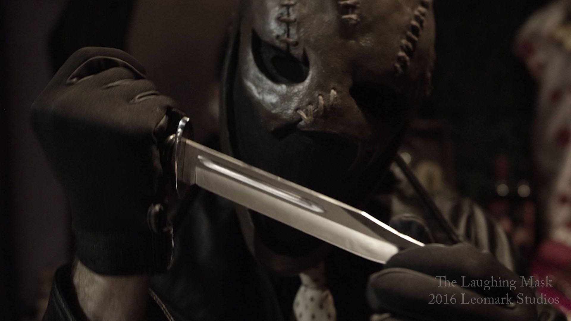 It was a couple of years ago that I originally saw a brief teaser trailer for The Laughing Mask. In it, a woman was being slowly tortured by a methodical killer wearing a creepy mask with a wide smile etched into it. I kept tabs on the film for the better part of 18 months before finally seeing an early screener late last year. At its core, The Laughing Mask is a crime/murder mystery film that happens to be masquerading as a slasher. Other than an impressive and potentially iconic villain, there’s no core element linking it to your conventional slasher flick. Aguiar has ticked the first box of Horror 101, fashioning an interesting and unique looking “big bad”. The outfit is great, the killer dresses like he works on Wall Street or as a Maitre D. The vests, the jacket and the varying colors of tie look great and offset the films dark color palette nicely. The mask (which can be seen above) looks fantastic and let’s face it, anytime you can’t see facial expressions it’s unnerving. In the opening of the film there’s a number of really smart and diverse shot choices and almost all the framing is perfect. Bill Schweikert, the DP (director of photography), is a guy with plenty of credits to his name, having worked on such films as “Chainsaw Cheerleaders” and “The Hospital 2”, as well as shorts like “Maniac” and “Straight”. A lot of the close up shots are used to great effect, usually focusing on the killer’s array of weapons or finer details of his lair. Given this is a low-budget independent film, I was surprised with the inclusion of a helicopter shot, in addition to a smooth aerial shot from the ceiling of a hospital.