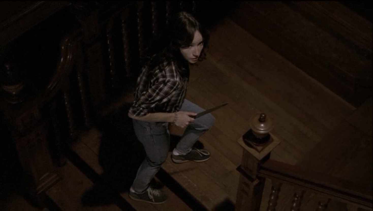 The audio levels are nice and consistent and the sound design, through good foley, helps maintain the tension that’s built within the first hour. The lighting is another standout feature in this one. In terms of the color palette the film stars out quite warm but as Sam’s situation escalates, it all darkens accordingly. Some of the highlights lighting wise, are a sequence where Sam goes into the bathroom to investigate and another where she makes her way up the staircase to look around. There’s fragments of light shining through the slats on the staircase and it’s a very subtle sequence. The wardrobe and set design are quintessentially 80’s, as you’d expect with it being a period piece. Sam’s always got her walkman playing (pumping out 80’s retro tunage) and along with her best friend Megan (played by Gerwig), pull on the faded denim jeans, flannelette button up shirts and wool sweaters to get into the swing of things. Everything inside the Ulman’s home looks old, older than the 80’s which should tell you something. The heavy pattern designs are reminiscent of rooms in The Shining and the couple themselves are quite strange to say the least. Ti’s approach to the soundtrack is an interesting one. Usually with films set in the 80’s, the complementary synth is just a given and while that’s ever-present here, there’s also some great songs by Grazer and The Fixx. It’s a fusion mixed score when things amp up and the use of synth and bass is what gives it that Carpenter esq feel, I really dug it.