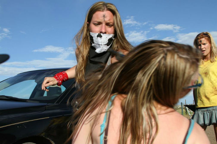 Now comes the part I really don’t like. Unfortunately you do see your fair share of failed attempts in low-budget filmmaking, especially when it involves people with little to no experience. Where do I start with Blood Soaked? I guess at its core it’s a revenge flick with a bit of a nod to similar films within the genre like “Dear God No” and “Nora!”. Ultimately though it has no real story or plot, at least none that you could care about. I couldn’t make out many details about the story, like whether the father was killed by the two sisters after being experimented on or was he killed during Hitler’s regime?? As far as I could see it was basically two crazy Neo-Nazi sisters trying to turn people into zombies in order to create some sort of army?? I couldn’t make heads or tails of it, it was very bizarre even for this style of film.
