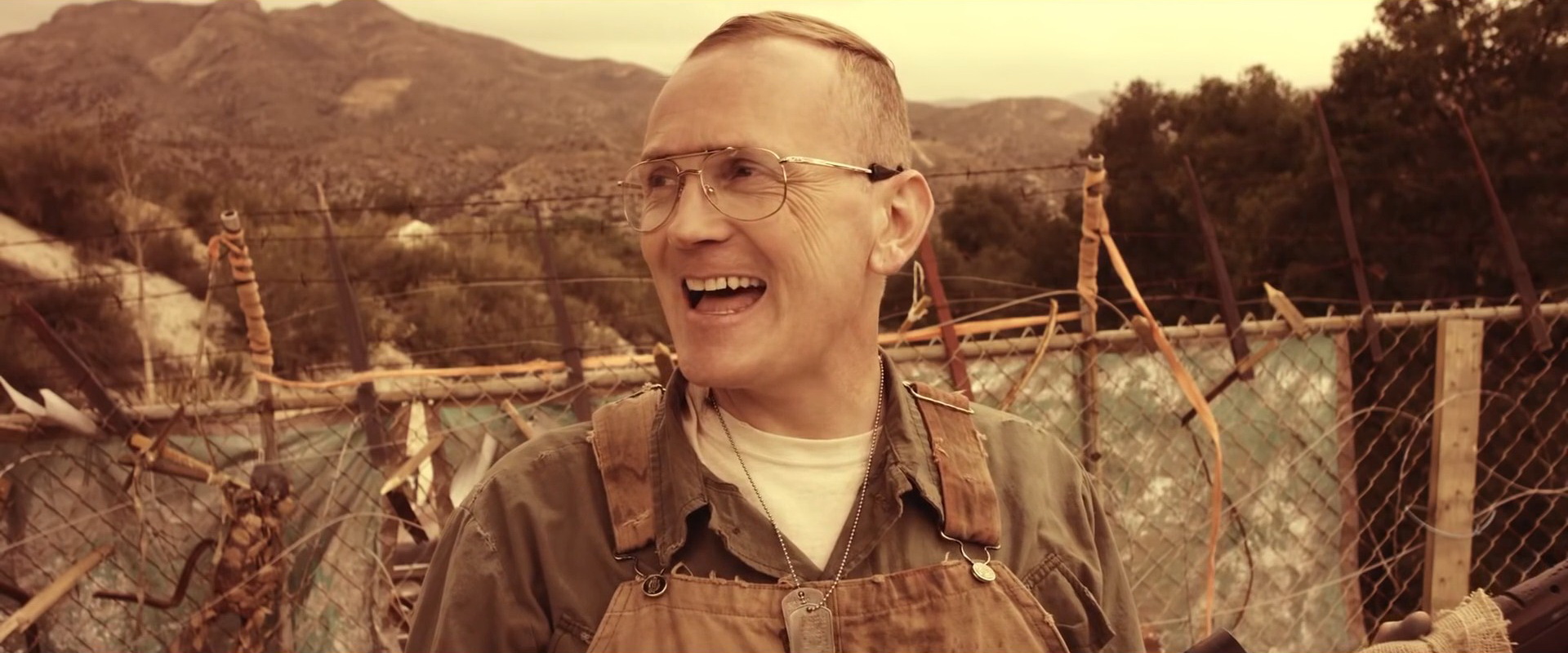 Keating’s clear throwback to 70’s exploitative Horror (among other things) couldn’t have a better premise and location setting. Every delicate detail of Carnage Park deliberately aims to place you right in the 70’s and more specifically, 1978. Everything from the wonderful Hitchcockian retro style poster art, through to the casting and each individual stylistic choice. The film opens with a sort of monologue by Pat Healy’s character, Wyatt, followed by some extremely snappy opening credits presented in a very Tarantino esq manner (think Deathproof). There’s a great variety of camera work on display in Carnage Park too. Keating’s Cinematographer, Mac Fisken, whose worked on each of his films, knows precisely how to frame things in order to get the most out of every shot. Darling was that film for me that I can honestly say was perfectly shot and I wouldn’t have changed a single frame. You can tell aesthetically speaking, Mickey and Mac have that kind of short hand most long time Directors and DP’s have with each other. There’s a lot of really effective focus shots and one superb aerial shot that see’s Vivian (Bell) trying to detach from someone or something. The washed out, bleak approach in the color grading of Carnage Park is exceptional and true to the time period. I’ve seen plenty of unjust criticism from critics and movie goers in general about the film only consisting of earthly tones but you have to understand that’s the desired effect (If it’s not your preference that’s fine don’t watch it but it isn’t a fault with the film).