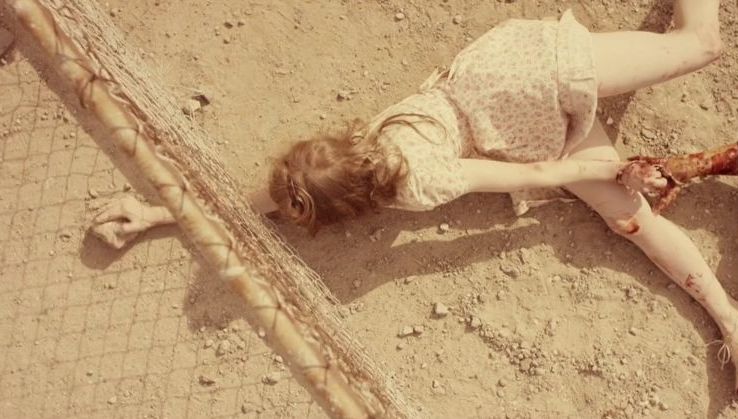 Carnage Park’s brisk running time of just 77 minutes (plus the credits) means that not a single frame is wasted and that’s exactly what you want from a film. Even though deep down I was left wanting (because I was so engrossed in it) every sequence was a feast. A couple of my favourite sequences were the car chase in the beginning (that I see people comparing to Pulp Fiction), which actually gave me similar thrills to that of Quentin Tarantino’s, “Deathproof” (and not Pulp Fiction) and Vivian’s shocking discovery involving a land map on a board, a record player, a queue of pillars and a couple of megaphones (with a bellowing voice singing disconnectedly) set to signal the enemy. The final 10 minutes or so has been unfairly criticized, for what people labelled poor technical execution which is not the case. Yes, the final sequences play out in almost total darkness and I understand people have their own preferences visually but an important part of evaluation is intent, intent of the film maker (especially when critiquing something). I know for a fact Mickey is so adept with presentation on all technical fronts and his approach to the end of Carnage Park is done with a clear-cut purpose. From the moment Vivian finds herself in her own version of hell (in this case a series of tunnel shafts) you’re anxiously awaiting her fate. It’s a very precise and slow burn build up to a rather ambiguous ending, which I think is genius (if you understand the intent). Much like a Tarantino film, the violence can sneak up on you. Keating is more about mood and building tension though, than just using the film as a platform to showcase shock value gore. That being said, the blood and gore fx are fantastic and shocking, there’s a couple of truly sensational scenes and one with a full body cast.