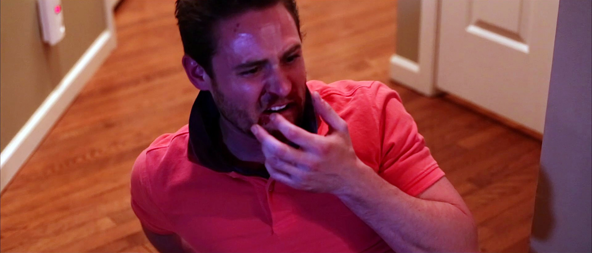 My favourite parts of the film (killing aside), involved interactions between Laurie and the pizza delivery guy, Joe (played by Rudzinski). The film’s running joke revolves around no one being able to pay Joe for the pizzas. Every time he’s on the verge of getting his money and leaving, something or someone gets in the way. That someone is usually Laurie, displaying an over sexed veneer and physical attraction to Joe in the most obvious of ways, yet like a lot of us guys… he just doesn’t get it. Toward the end of the film there’s a great gag poking fun of the fact that Laurie is using a phone but claims no one has a phone to call for help. In other words, we all have phones but we can get so wrapped up in social networking that we forget there’s these things you can make with them called phone calls…. I know right?! In another instance there’s a humorous scene between rambunctious Preston and Joe, following an altercation with another party goer. Preston is distraught with how his face looks after said altercation and Joe just wants his money, its well-timed and delivered cleverly. In terms of characters and performance, majority of the cast do a decent job in their respective roles. Proud is over the top but entertaining, Marie looks great and balances the film out and Rudzinski has the best comedic timing of the bunch. Steve’s definitely improved over the years and I enjoyed watching him in one of his previous roles in “Scream Park” *see review* https://adamthemoviegod.com/scream-park-review/. Some of the secondary performances in CarousHELL aren’t that great but those characters only have limited screen time.