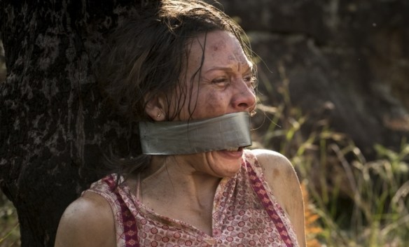 Mello’s camera work is fairly solid considering the films small budget. Most of the framing looks nice and there’s a couple of effective tracking shots throughout. My favourite sequence of shots are at the beginning of the film. There’s a great one of Lena in her underwear lying on the bed, followed by a series of sharp quick cuts as she grabs her belongings and leaves the house. The in-car shots were done quite well too. Roger Lima’s music structure doesn’t always work but it’s at its best when the carnival style music cues during scenes between Cangaco and his sidekick, 8-Ball (played by Paula). Some of the pop rock music the group plays on their IPod sounds alright as well. Overall, the acting is okay. About what you’d expect from a low-budget slasher film with non-English actors. I thought Bia and Francisco delivered two of the better performances in the film, though it helps that Gallo is easy on the eyes (especially that booty of hers). Mello and DeBrito have obviously seen their fair share of horror content, namely Tobe Hooper’s “The Texas Chainsaw Massacre” and don’t shy away from eluding (often through dialogue) to what keeps fans of the genre entertained. Beto even mentions “The Devils Rejects” and “Nekromantik” in relation to how graphic things have to be in order for him to really enjoy it. The first bit of gore comes just 20 minutes into the film and it involves a pig. It looks quite graphic and bloody (so here’s hoping it wasn’t a real pig). There’s a sizeable amount of practical blood spray during the climax of the film and a commendable decapitation a bit earlier.