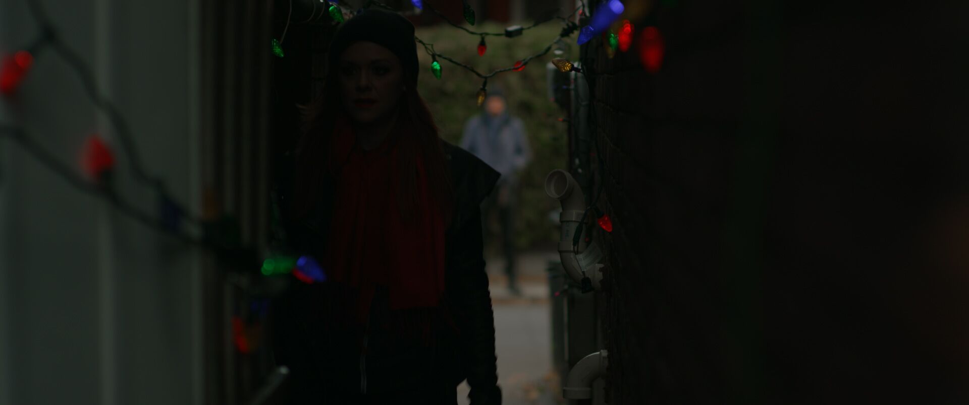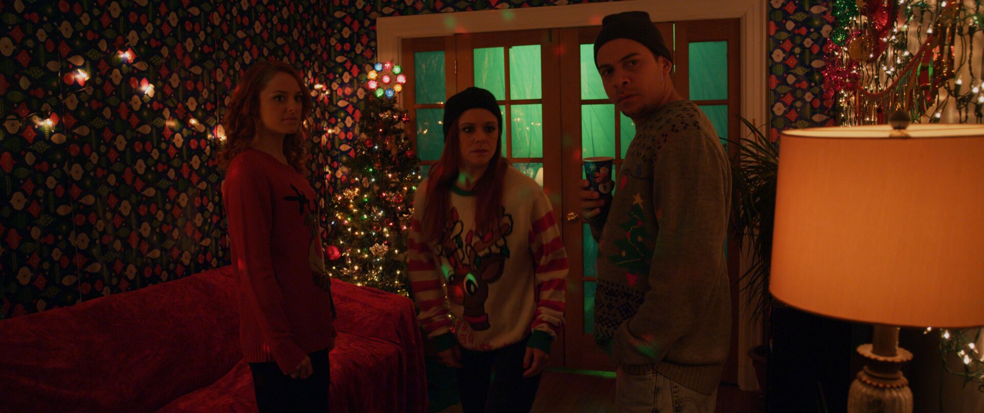 I swear I say it every time I review one of these, even more so because the holidays are quickly approaching but damn I love a good Christmas themed slasher. Do You See What I See has an impressive production value, emphasized by its high quality cinematography. The shot choices are diverse and the framing wonderful, combined with the fact that everything is so tightly edited too. The sequence that stood out most, involves a smooth tracking shot, as Sloan makes her way through her sister’s backyard to greet her brother-in-law, Chris (played by Adam Buller). The audio levels are pretty clear and everything is nicely lit, in particular scenes that employ green and red lights in the basement. With this taking place in a Christmas setting, the music was always going to be key. I’m pleased to see Justin and Serena go with classic holiday music (something other film makers often don’t do). The score starts heavy on bass and festive bells but also exercises moody synth, in order to add that touch of “slasher” about the proceedings. There’s even a rocked up version of “Jingle Bells” in here, which I dug as well. The performances are all reasonably natural and I particularly like the casting of Le Grand and Cadence as sisters. The two of them have similar builds and facial features, plus their chemistry and dialogue were both believable. Buller is solid in his brief role, as is Alexander. The ball takes a while to get rolling but the snippets of conversation throughout are entertaining enough and when the action comes, we get some decent practical blood effects.