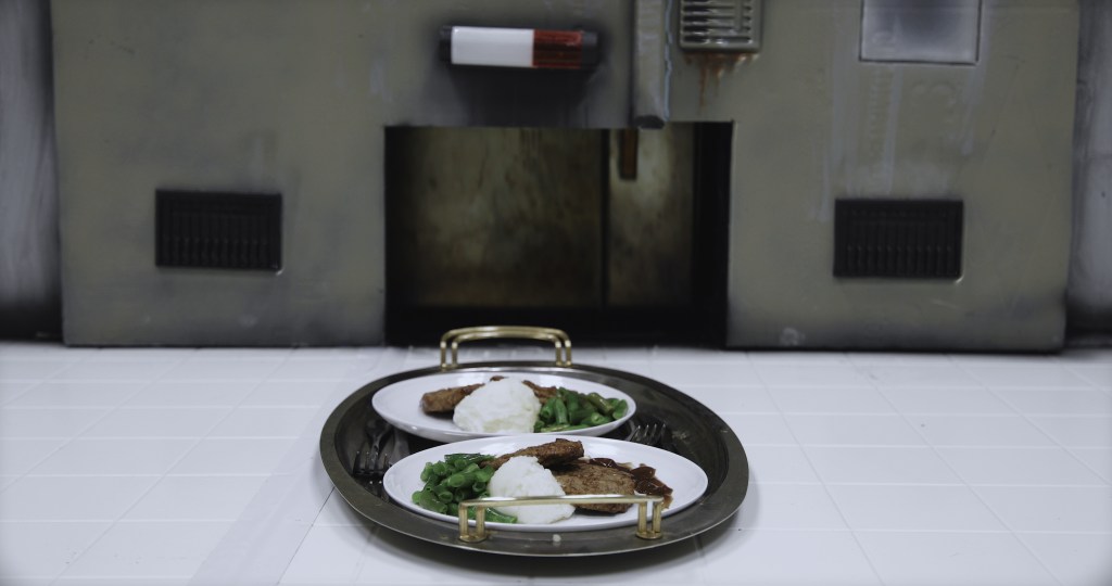 Five Course Meal plays out in a contained setting with minimal dialogue and just two characters. In addition to writing and directing, Cadden also served as cinematographer and editor (having previously shot most of his own work), doing a fine job in all departments. The framing is consistent, the edit comes together tightly, and the audio track is acute. As you can imagine, food plays a crucial part in the workings of the trial and both actors are willing to get more than a little dirty for their art. However, it’s Brendan Boyd and Kevin Kuzyk that deserves all the accolades here for their impressive molds and practical blood and gore fx. The climax of the film is a violent and memorable one. With the exception of a couple of synth notes toward the end, I didn’t find the score overly appealing, that and a little more context wouldn’t have gone astray regarding the experiment. What was bringing on the compulsions? What was the relevance of the food?
