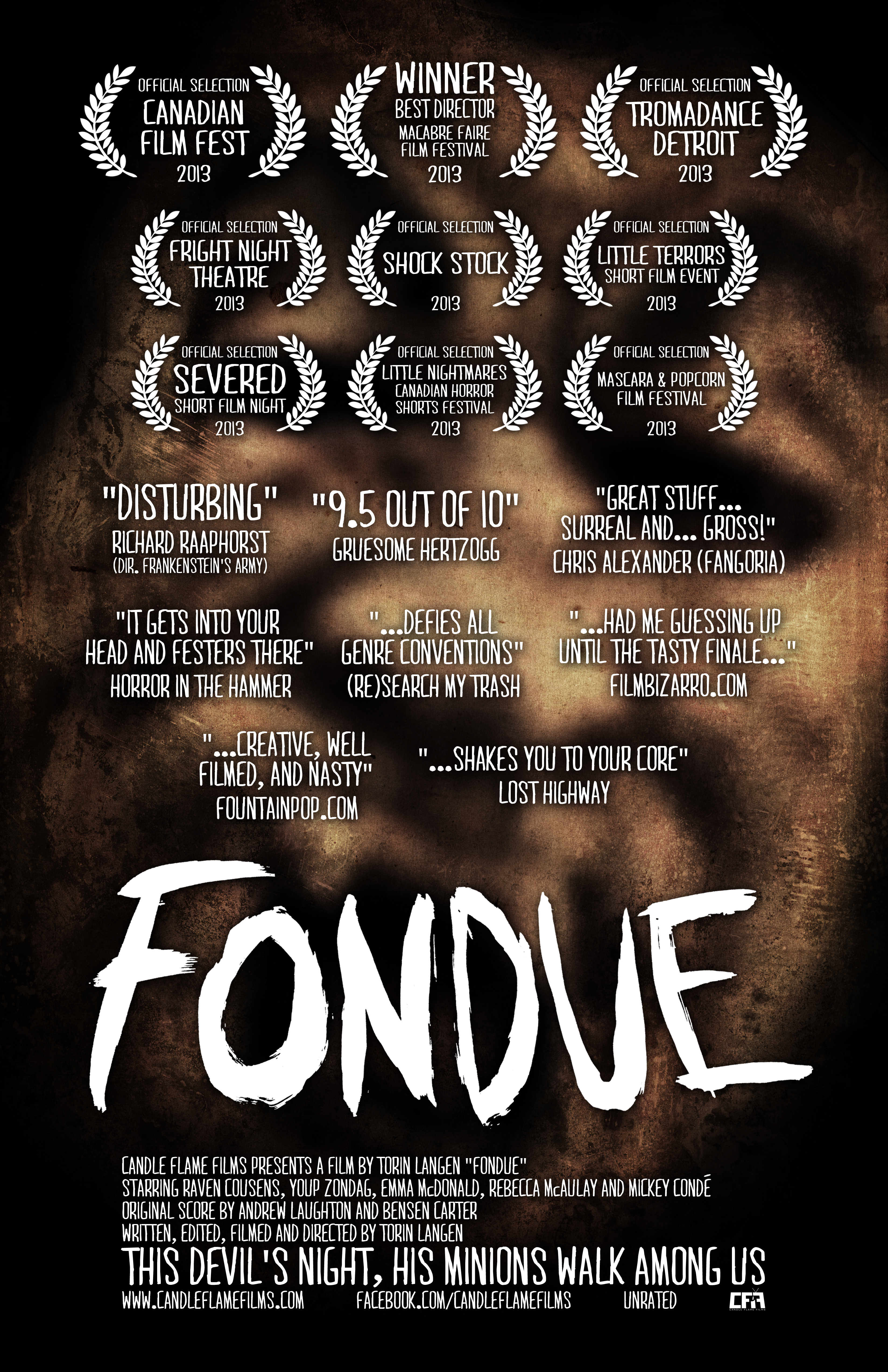 Fondue is just simply fantastic film making, no matter how you look at it. From a technical point of view its flawless, and the short screenplay is eerie and incredibly effective. With a wonderful production value and Torin’s professionalism, I can safely say he’s used his small amount of money wisely, superb work!!