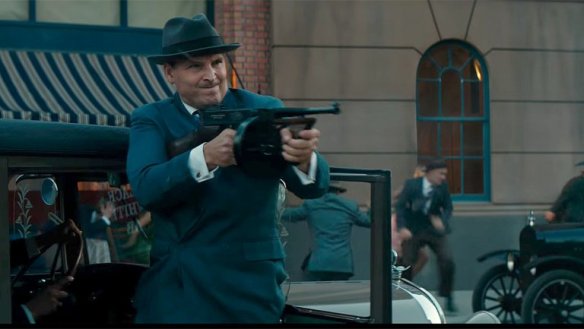 Costume designers don’t usually get much love in the form of written reviews, but I like to think of myself as a bit of a trendsetter so I’m highlighting Erica Schwartz’s design work. With credits on multiple feature films like Martyrs (2015), All Cheerleaders Die and Officer Downe, as well as TV shows like, Agents Of Shield and Awkward, Erica clearly knows her stuff. The suits and ties look good, the hats authentic and Sigler’s multiple hair styles for the role of Lulu are stunningly done. The music was composed by Samuel Smythe whose done extensive work in short film. The score grew on me and though there were parts of the film where I felt it lacking, I dug the deep violin and the jazz when it was present. The best piece of music is a mix of french horn, cello and bass but unfortunately there wasn’t quite enough of it for mine. So many people I recognized were popping up all over the place in Gangster Land. Facinelli as “Bugs” Moran, Capone’s rival and it was great seeing him do something a little different. Al Sapienza (another of the Soprano’s alumni) appears as Johnny Torrio, Al’s boss. Even Sean Kanan, who you’ll all remember as the cocky, Mike Barnes (from the Karate Kid franchise) makes an appearance as a corrupt detective. The strongest emotional performances come from Faris and Sigler (playing a married couple), though the surprise packet for me was Milo Gibson. Not only is he incredibly well cast as Capone, he deals best with the specific accent and timing. The amount of on-screen action is serviceable taking into account the budge,t and the practical blood effects look really good.