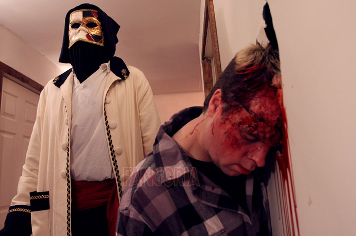 This is low-budget filmmaking so keep that in mind if you decide it’s a film that appeals to you. It’s set in primarily one location with minimal main characters and a bunch of really average secondary characters. I thought Owen recording a lot of the investigation as he navigated the house was a cool aspect. Richard Cutting is a dead ringer for a Cary Elwes/ Bill Moseley type, it sidetracked me a little if I’m being honest (haha). The opening act has a wonderful atmosphere and the entire score is really enthralling, I loved it. There is some of the old style film/noir sound effects mixed with a more suspenseful M Night Shyamalan inspired score. In my opinion that and the impressive practical blood and gore effects were the two best aspects about the film. The action is pretty scarce (blink and you might miss it on a few occasions), but we are given some stabbings, face crushing and some others that I won’t spoil for you, when their there they look cool. The look of the servant doing all the killing was an obvious nod to EWS, but none the less still very cool.