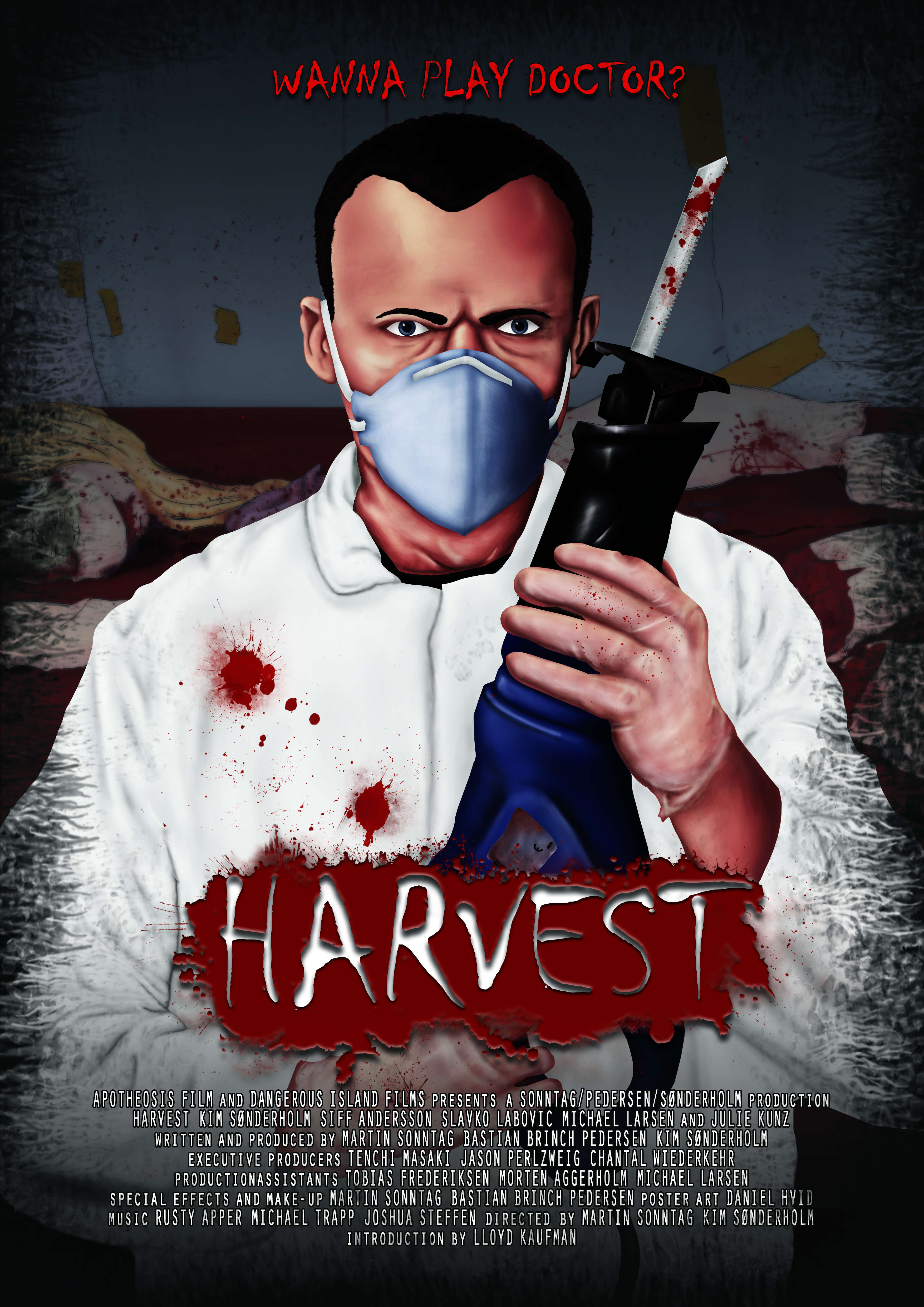 Firstly, I just want to say thanks to Co-Directors Martin Sonntag and Kim Sonderholm, for allowing me early access to an online screener of their 19 minute, Body Horror short “Harvest”. It’s a Danish film that follows a deranged surgeon named John (played by Sonderholm himself), who deals in selling organs on the black market. His latest deal went south when the buyer Zarko (played by Slavko Labovic), found damage to the organ. John’s life hangs in the balance, as he has a very small window of time to locate someone with a specific rare blood type and get their organs to the buyer. The film also stars Siff Andersson and Julie Kunz. I’m not sure about the total budget for this one but it’s low, indie film-making that I’d estimate at $3,000 to $5,000, but don’t quote me on that.