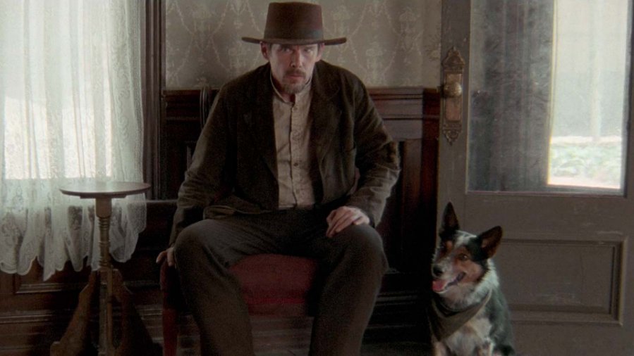 This is a review for the brand new Drama/Western, “In A Valley Of Violence”, Written and Directed by Ti West (The Sacrament and House Of The Devil) *see review* https://adamthemoviegod.com/the-house-of-the-devil-review/. In A Valley Of Violence follows the journey of a mysterious stranger (played by Ethan Hawke) and his dog as they make their way to Mexico. A random act of violence in the small-town of Denton, sees Paul’s (Hawke) fate cross paths with a town of misfits, headed by Gilly (James Ransone) and the Marshal (John Travolta). The film also stars, Taissa Farmiga (of American Horror Story), Larry Fessenden (Carnage Park and We Are Still Here), Karen Gillan (Dr Who) and Burn Gorman (Game Of Thrones). It’s quite rare that Jason Blum and Blumhouse Productions back a film in a genre that isn’t Horror. I’d heard a few things about this one over the last couple of months but it hasn’t had the same publicity as its counterparts in “Jane Got A Gun” and “The Duel”, among some others. I thoroughly enjoyed West’s, House Of The Devil, an homage to old school 80’s Horror, and can always respect film makers that attempt to add further strings to their bow.
