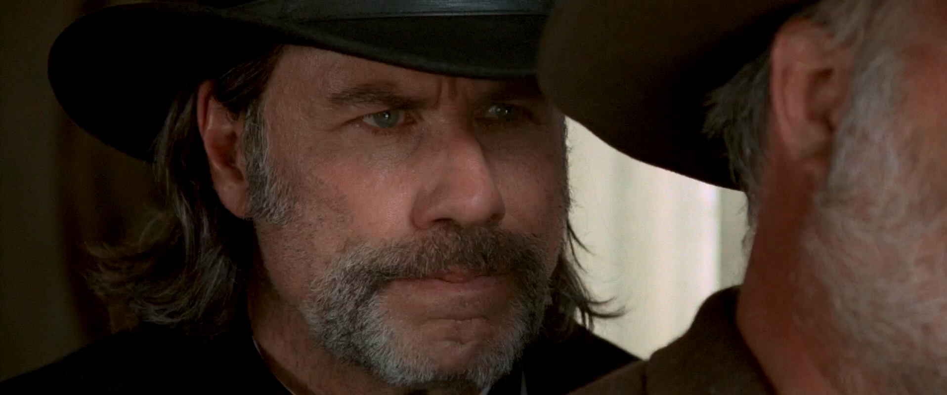 The real surprise here though is the inclusion of John Travolta. Here’s a guy that’s done work in almost every genre, some of it successful, some not but it’s something about this older, more disheveled looking Travolta (which I know is probably mostly makeup), that really suited the role of the “Marshal” perfectly. His lengthy mustache looked authentic and his voice and dialogue delivery was as good as anything he did in his heyday. There’s a lot of great content in West’s script and though the film is a bit of a slow burn at times, the second half of the film churns out plenty of fun sequences that contain a bit of everything. Larry Fessenden’s, Roy, makes an impression with his limited screen time and James Ransone, who I’ve been a fan of ever since Larry Clark’s art house film, “Ken Park”, turns in a slightly uneven performance but his good is quite good. A lot of work clearly went into the costume design and recreating the period authentically. Not only that, but even the set dressings, which may be scarce in volume (mostly due to budget I imagine) but not quality, help to create the world for this tale of revenge to take place in. Most of the action gets underway toward the end of the second and third acts but the gun slinging is a good bit of fun. There’s some brief practical blood on display as well.