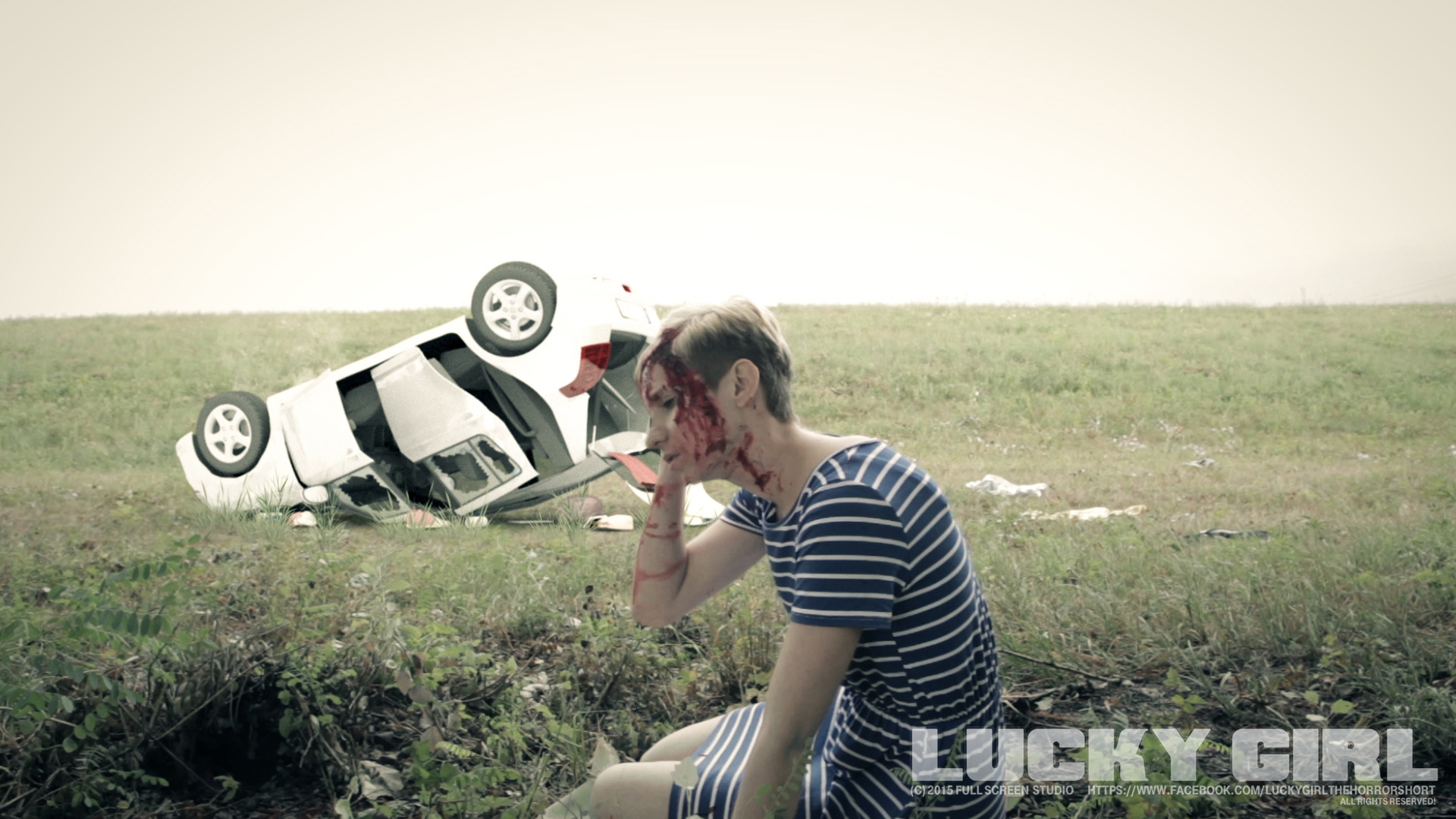 Lorant’s script is pretty straight forward and because it only runs 16 minutes, it doesn’t waste anytime getting to the thick of it. It’s a pretty in your face experience but without going over the top in on-screen ferocity. Right off the bat you know Benko’s character isn’t just looking to help innocents at the scene of an accident, he’s definitely hoping to take advantage of the unfortunate situation and he does. Laura Csonka, with Lorant’s direction, shot a great looking film. There’s a couple of early dolly shots which help to raise the production value and all the framing is consistent as well. The focus shots and close-ups inside the killer’s den look great. Lorant uses fade ins and fade outs perfectly, to parallel our trio of girls falling in out of consciousness while tied up. The sound is nice and loud but the lines of dialogue border on peaking out (there’s only one or two though). The score could have been more dominant, however, I enjoyed the heavy use of bass and addition of what sounded like keys. A film this violent in nature should have plenty of the red stuff but Lucky Girl doesn’t actually have a lot. Most of it’s pretty simple blood and not much prosthetic work but regardless, I liked the practical stuff.