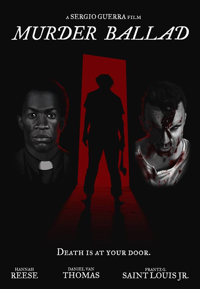 Firstly, I’d just like to say thanks to Midnight Shiver and Producer, Alison Pringle for allowing me early access to an online screener of the 10-minute Horror/Thriller short “Murder Ballad”, Written and Directed by Sergio Guerra. Murder Ballad opens to a woman (played by Hannah Reese) frantically searching her bathroom for paraphernalia to tend to the stomach wound acquired by her criminal ex-husband (Daniel Van Thomas) during a recent robbery. Suddenly there’s a knock at the door. On the other side, a mysterious preacher (Frantz G. Saint Louis Jr) who speaks in rather cryptic tidings as the night comes to take a dark turn.