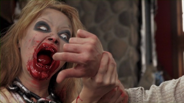 The minimalistic set design (on a budget) and authentic costumes both help sell the state of play, and the performances, by and large, are reliable and entertaining. In her first on-screen appearance, Sacha Gabriel exhibits an assurance of her surroundings and appears to know when and where Eliza’s theatrics are called for. However, it’s really the copious amounts of quickfire delivery between Evenchick and Caiger’s well-to-do gentlemen that make My Fair Zombie a pretty fun watch. The former has been a long-serving go-to for Kelly, having collaborated with him on a number of projects. I was most impressed by Lawrence’s ability to stay in character with his British accent, and the older Barry Caiger nails the colonel’s diction faultlessly. I’d wager that both of these actors have spent time in the theatre. As far as action goes, there isn’t a lot to be found here. There’s only really one extended moment involving some practical blood spray with Mrs. Pearce (Vallance), the caretaker. There’s a handful of gunshots that occur in the beginning and there’s a couple of frames showing a brain that looks suspiciously like red jello (haha).