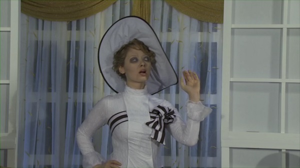 My Fair Zombie is light on character and simple by design, and therefore even an 80-minute run-time feels like it’s been padded out a bit. The film lacks attention to detail in unusual places not necessarily gauged by budget constraints e.g the makeup fx and some of the set dressings. The zombie makeup is far too soft and the application looks to barely consist of contact lenses, eye shadow, and some foundation. Those who know their zombie content may be disappointed with the absence of cornerstones like prominent veins, discoloration, and the blood. There’s also no attempt made to age Eliza as she inevitably decomposes (or one would think). Forgotten specifics aren’t always a good look, such as no tea in the teacups when actors are supposed to be drinking. Some of the discourse feels a touch repetitive and the editing techniques are lacking a bit of dare that would have better suited this musical. Accents do waver from some of the secondary players at times, but that’s probably to be expected when the cast isn’t English. Unfortunately, the horror flavor is scarce because it ultimately takes a backseat to the comedy, which doesn’t hit home all that hard either.