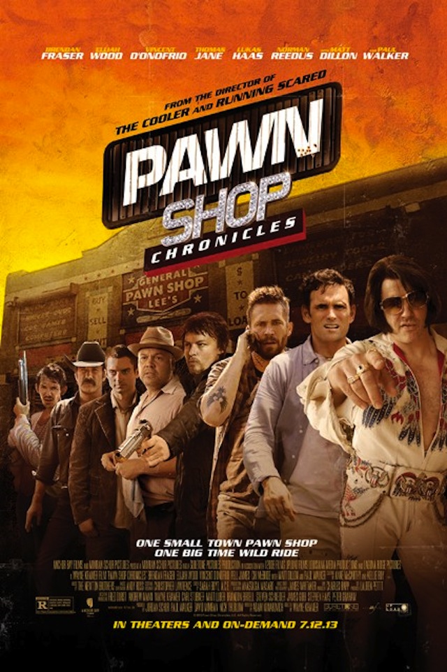 “Pawn Shop Chronicles” is a new film from Wayne Kramer (Crossing Over, Running Scared). It’s almost three different films mixed into one. It has a wonderful ensemble cast. The likes of Paul Walker, Matt Dillon, Brendan Fraser, Vincent D’Onofrio, Norman Reedus, Elijah Wood and DJ Qualls. In their own right all these actors are great, so I was pretty excited to see this. Walker is the star of the first segment, playing a meth head named “Raw Dog”. Raw Dog and his brother Vernon (Lukas Haas) along with Randy (Kevin Rankin) are planning to rip off their drug dealer Stanley played by Norman Reedus. I was disappointed to see that Reedus was virtually non-existent in the story. He can give such great performances, to not utilise him wasn’t a good choice.