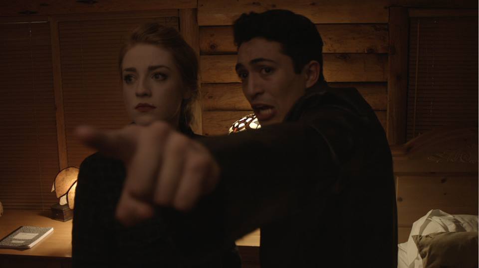 The script for President’s Day was penned by a trio of Actors from the film, Goodwin, Zuckerman and Zumwalt. They definitely take a couple of cues from Sam Raimi’s, iconic “Evil Dead”, through the plot device that brings about the apocalypse (for lack of a better word) being an old journal, close enough to a book. I’m sure Raimi’s film probably wasn’t the first of its kind to be set in a secluded cabin in the woods either, though we can’t help but draw that comparison when we see a horror film with a cabin in it. I really enjoyed the opening credits, they’re interesting and well-edited, utilizing character motion in black against a backdrop of the U.S flag. The cabin itself makes for a wonderful location, particularly because the seasons look mid change during the shoot (hence the sections of snow still about). The framing is really nice, considering most of the internal shots take place in what I can only imagine were small rooms. Most of the shot choices are pretty diverse and the brief scene inside the car looked slick, not to mention the pleasant and easy on the eyes, color grading. Nearly all the dialogue audio is consistent (even with some of the ADR) and I enjoyed the piano ballad during a sensitive scene between Lilly (Ricketts) and Jake (Zuckerman).
