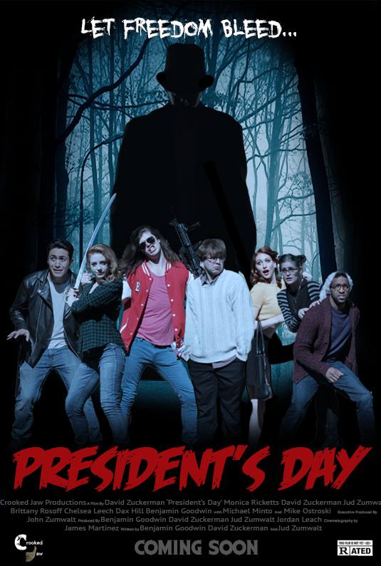 Firstly, I’d just like to say thank you to Co-Writer/Actor/Director, David Zuckerman for allowing me early access to an online screener of his feature-length, Horror/Comedy “President’s Day” (not to be confused with Chris LaMartina’s slasher of the same name). President’s Day sees a group of ill-fated teens, take a trip to a cabin in the woods to celebrate the annual holiday. Shortly after arriving, outcast, Max (played by Chelsea Taylor Leech), accidentally reads from an old journal, in turn conjuring zombified leaders in the form of past presidents. The groups only chance of survival is to call upon the demonic spirit of John Wilkes Booth (Michael Minto). The film also stars Monica Ricketts, David Zuckerman, Brittany Rosoff, Jud Zumwalt, Benjamin Goodwin, Dax Hill and Mike Ostroski. Zuckerman (a dead ringer for fellow actor, Ben Feldman) has been involved in the film making biz for around five years but this one is my introduction to his work. In horror right now zombies are all the rage. Even as I write this review, I’m sure everyone is still coming to terms with the conclusion of that latest episode of The Walking Dead (a show that I myself do not watch but I hear all about). Zombies are just as frequently the subject matter in the Horror/Comedy sub-genre as they are on TV. I’m not the most hardcore of fans when it comes to zombie related content but I’ll still give most of it a go.