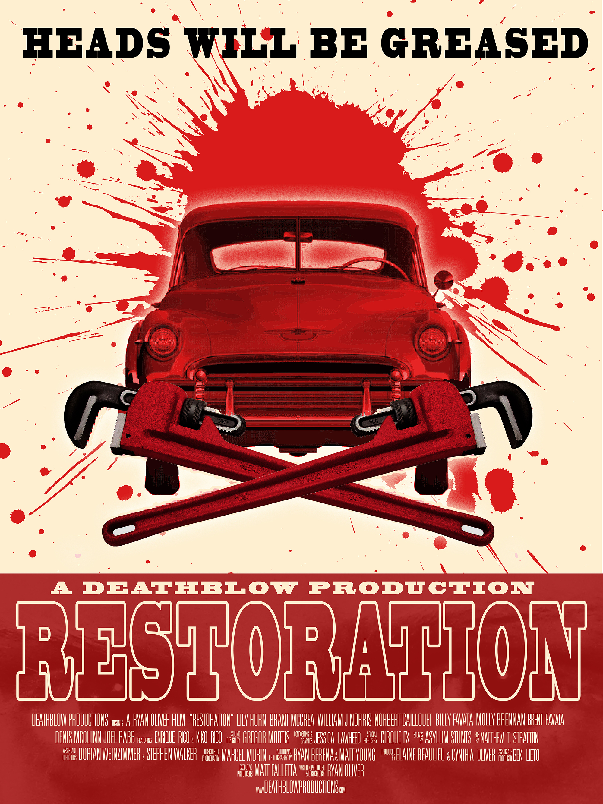 Firstly I’d just like to say thank you to Writer and Director, Ryan Oliver for allowing me access to an online screener of his 47 minute, Horror film “Restoration”. One day while playing hide and seek in the countryside, Yvonne LeMay (played by Lily Horn) gets stuck in the trunk of a 1950 Fleetline Deluxe. Over 50 years later Sonny Ray, a rev head (Brant McCrea) spots the car for sale in a newspaper ad. Shortly after the car changes ownership, it’s relocated to a mechanics clubhouse/workshop. Little do the employees of the workshop know Yvonne’s spirit still remains inside the classic car and she’s little to happy with the change in location. The film also stars Billy Favata, Norbert Caillouet, William J. Norris and Molly Brenan. Not only is the first time I’ve seen any of Ryan’s work it’s also the first “half film” I’ve seen.