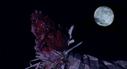 I stumbled across the IMDB page for “Scarecrowd” (formerly known as The Musk) a while back and after having networked with Antony Coia, who composed the films score, I jumped at pre-ordering the Blu Ray from the guys at http://srscinema.com/. I’m a huge advocate for low-budget and independent film making and it’s websites like the aforementioned who are releasing this type of content, so make sure you support them. I really like the Scarecrowd poster art and the Giallo inspired, psychedelic opening credits to the film. With a multitude of diverse influences, Nevada throws caution to the wind by engineering means with which to include said connections, even if the film doesn’t really call for it. The grindhouse element is present through Nevada employing a constant flickering and popping of the image. The exploitation on display with the way he lingers on female nudity, the voyeuristic component of the shower scenes comes to mind. The camera work is generally pretty good, a lot of simple still shots that coincide with the films small budget. Some of the low angle framing works nicely and there’s the odd highlight in editing, most notably when a young man’s bike headlight fades out and turns to a shot of the moon. A big portion of the film takes place at night and most of it was lit atmospherically. Coia’s heavy reliance on ambient synth in the mix complements Scarecrowd’s trace of 80’s nostalgia.