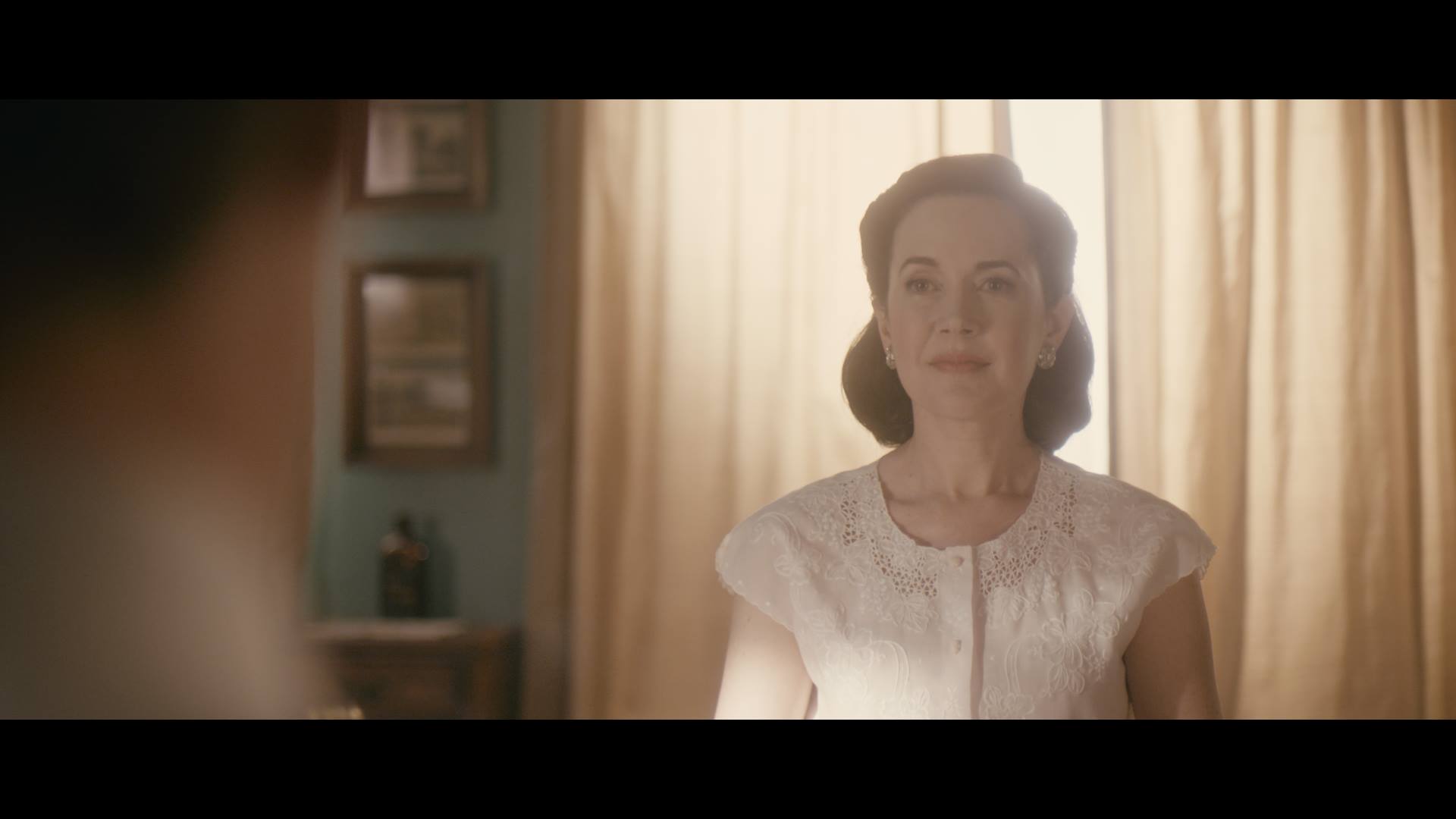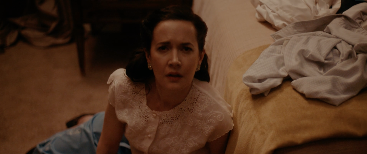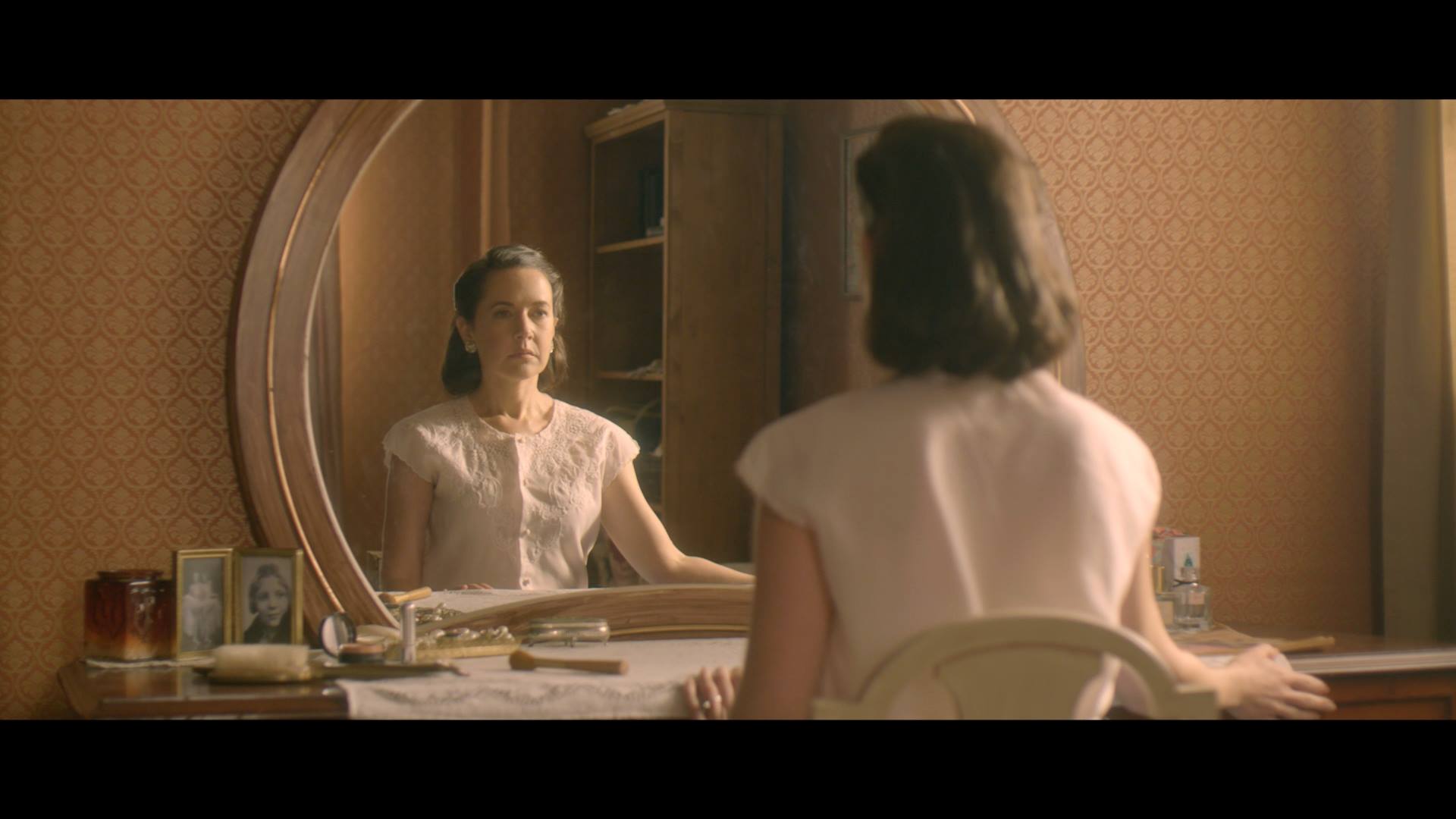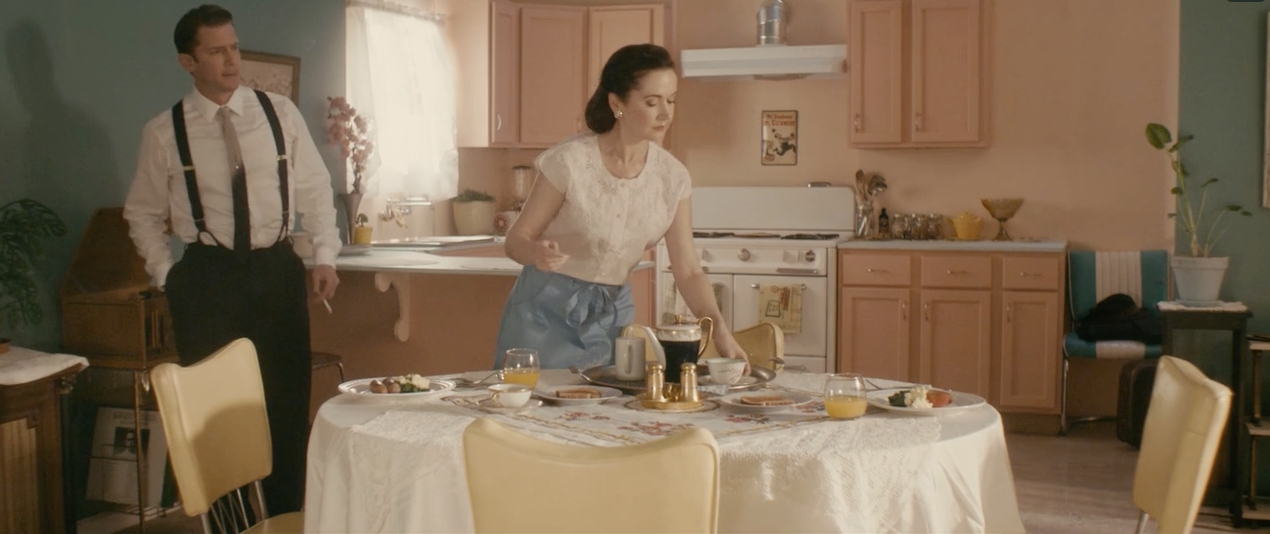It was the circa, 1950’s setting of Scratch that initially appealed to me and got me intrigued in the film. There’s so much you can do stylistically when it comes to a period piece, especially one set in the 50’s. Think of iconic TV shows like “I Love Lucy” and “Lassie”, it was a great time in history and the old conventions surrounding the husband and wife relationship, now make for an interesting psychological deconstruction because we’ve come so far in modern society. The production value is fantastic in this one. Scratch opens with a soft and slick color palette, utilizing a series of gorgeous shot choices that focus on Lily’s blouse and earrings, as she prepares to play her fixed role of housewife. The framing is skillfully executed and all the extreme close-ups play to the beats of Geoff Saville’s edit. Bell and her art department are to be lauded for what they’ve comprised on-screen. The attention to detail in the set design is remarkable. The costumes look authentic, as do the hair and makeup. Women wore basic blouses, men wore suspenders, dress pants and stylish hats. If it wasn’t for the advanced technology I’ve come to know with the turn of the century, I would’ve loved to have existed in that time period because everyone had a sense of class about them. The kitchen, the wallpaper, the record player and even the carpet, all manage to place you right in the intended environment, you’ve gotta love that.
