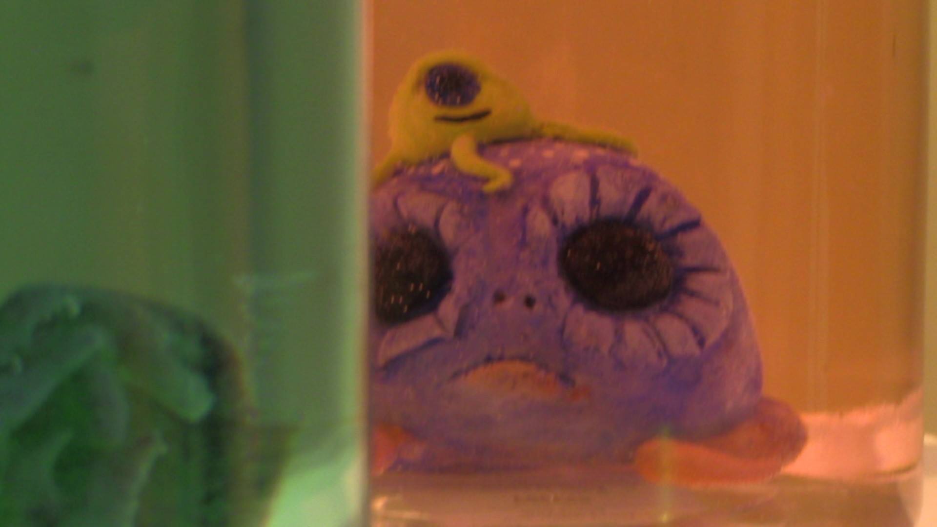 I’ll summarize the film first and then break it down into the respective sections. This being a first feature not to mention one on a shoe string budget, it may have benefited from simpler story telling. There’s no even that much of a story here, it’s more that the three segments which feature new characters often played by the same actors, feel drawn out and detached. Maybe the intention was to make a short film but it just happened to grow into something bigger over time, I’m not sure. The only common theme in these sequences are the mysterious goo these slimy little guys leave behind, I don’t even recall any exposition on how this stuff was concocted, if the information was there I must have missed it during all the shenanigans. At one point the substance burns characters, other times people rub it on their skin and begin to hallucinate, as can be seen in the second and third acts. No real rules or back story regarding the sole plot point are ever established. The wraparound was very predictable and only served as a minor introduction, the first and last sequences were definitely the more enjoyable. Most of my gripes about the film are technical based though, some of which can be chalked up to lack of funding, the rest  down to experience.