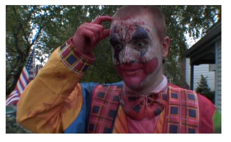 Like I said, I really enjoyed Mike’s first film “Deadly Detour”, it had a lot of technical issues but the fun story and fantastic blood and gore effects with a limited budget, made it entertaining and memorable. Sloppy has the same feel about it but this time it’s a much more polished product. Imdb (International Movie Data Base) says the film was made for around $10,000 but I have feeling that it’s less than $5,000, you’d have to ask Mike to be sure though. The production value is great. For one, It’s great to see another clown (horror) flick, there really aren’t many of them being made these days. This time around the audio is nice and clear and the camera work focuses much more on still shots, some of which Deadly Detour didn’t get right. The scenes are edited a lot smoother and it all flows really well. It’s a short running time of 75 minutes but manages to give you enough of an introduction to Mike and the type of person he is at the start and why he changes. The audience knows he is not really a bad guy, maybe he’s just been dealt a bad hand and not dealing with it in the most productive way.