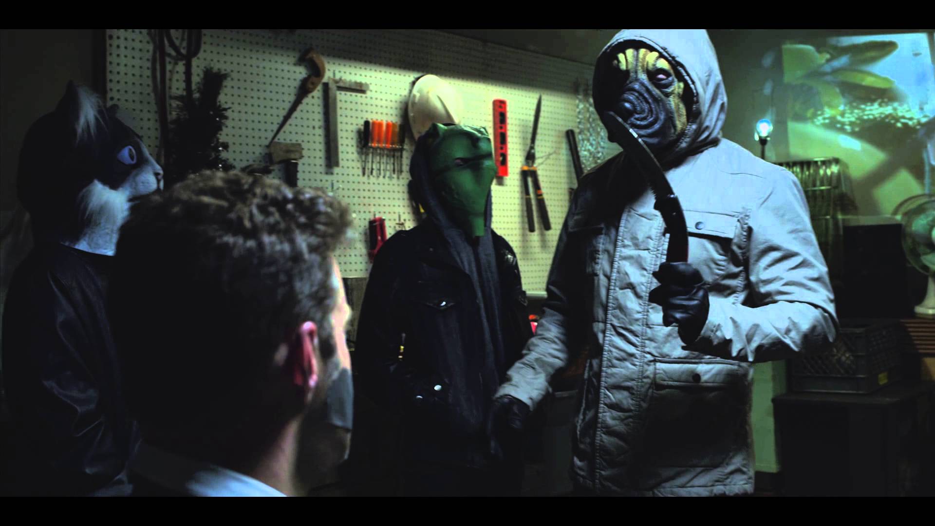 The standout aspect for me when it comes to the story/script, is in the way one of the secondary characters is introduced (or to be more accurate), not introduced (haha). Ordinarily I’m not a fan of abrupt cues or revelations within the story, especially if they don’t have context. I feel like most things need to be explained (within reason of course). Directly or Indirectly, Wagner and Zambeck have taken the brilliant approach to that of the Coen Brothers (Blood Simple and No Country For Old Men), choosing not to openly introduce an important character that eventually comes into the mix. It’s not often something that’s given much thought too, so I thought I would reference that reference in this review (haha). I really respect the way in which that was done and if you watch carefully, there’s an acknowledgement of said approach earlier in the film. I just want to touch on “You’re Next”. It’s one of my favorite home invasion horror films, so it’s hard not to make comparisons between that and the masks in Badger Game, minus the fact that they are over sized (haha). I know that animal masks have been a gimmick for a while now and people are sick of it. I for one though, don’t care how many times they get used they serve their purpose.