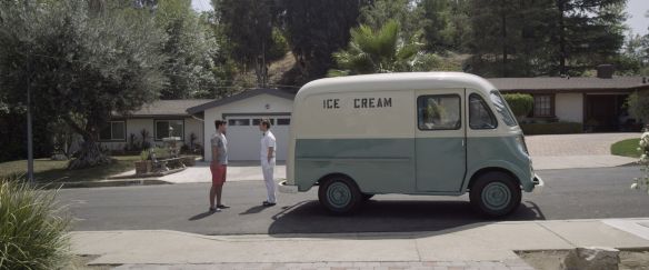 I feel like I’m saying it with every new actor that I’m introduced to, but Jesus everyone looks like someone else these days (haha). Deanna Russo is a beautiful young woman, a cross between actresses Olivia Wilde and Summer Glau. Her performance is probably the best of the bunch, and those who’ve ever had an identity crisis or felt lost, wondering where they fit in, should be able to relate to Mary (at least on some level). I was interested to see how Jeff Daniel Phillips fit into the film, and although he’s not given much screen time, he was aptly cast as an intimidating delivery man and did it well. The trio of mature ladies (played by Barraford, Lisa Ann Walter and LaTeace Towns-Cuellar) that live in the street embody that Stepford Wives element I spoke of earlier. They’re a little to eager to engage with Mary, but at the same time quietly compete against and judge her. Christina’s (Walter) eighteen year old son, Max, takes an interest in Mary after sensing her reservations to engage with the nosy neighbors. Mary may be well into her 30’s but she’s young at heart and that acts as the catalyst for her internal conflict and moral dilemma as the film wears on. Redlinger, who looks like Dominic Monahan crossed with my buddy Gabriel Lee, turns in a serviceable performance, albeit a little inconsistent at times. I liked the fresh casting of Norwegian born, Emil Johnson as the Ice Cream Man. He doesn’t look like your obvious villain, and while not necessarily scary, for all intents and purposes it works in the confines of the films aesthetics. Given the amount of time Johnson spent in different countries around the world, I think his American accent was spot on. There’s not a big body count on display in The Ice Cream Truck but the practical blood looks good and there’s a couple of thrilling kills involving a scooper and a knife.
