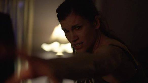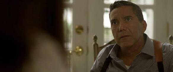 With a quick run time of just 78 minutes, The Night Before doesn’t get bogged down in too much of its own exposition and that’s one of its key strengths. The audience is immediately introduced to a man shortly revealed to be Jasper. Following that, Detective Perez (Quezada) tells a family of locals about the recent escape of the tormented and abused man, warning them to stay on guard. For most of the movie that’s all we’ve got to go on in regard to the mask wearing stranger, though I love the way Brett presents said scene with Perez and the local family. Shots of the detective in the house describing Jasper are intercut with voice over and frames of what appears to be a man navigating an area nearby. Much like in Bentman’s, Apocalypse Road the casting here is really good as well, especially with the mother and daughter pairing of Whittle and Acosta. It definitely doesn’t hurt that the two look the part, but that being said, they’re still able to gauge that natural chemistry with one another which isn’t always easy to do. Kudos have to go to Brett for getting Steven Quezada on board, whose Steve Gomez from “Breaking Bad” will probably forever be etched in our minds. He’s a natural in front of the camera and does his thing yet again, as a cop none the less (haha). Tom Zembrod, the Bill Moseley look-a-like of all look-a-likes if there ever was one, plays the antagonist of the film and turns in another decent and consistent performance. McEvers and Hanson round out the cast with serviceable secondary roles. There are some brief practical effects on display but this one plays as much more of a suspense/thriller.