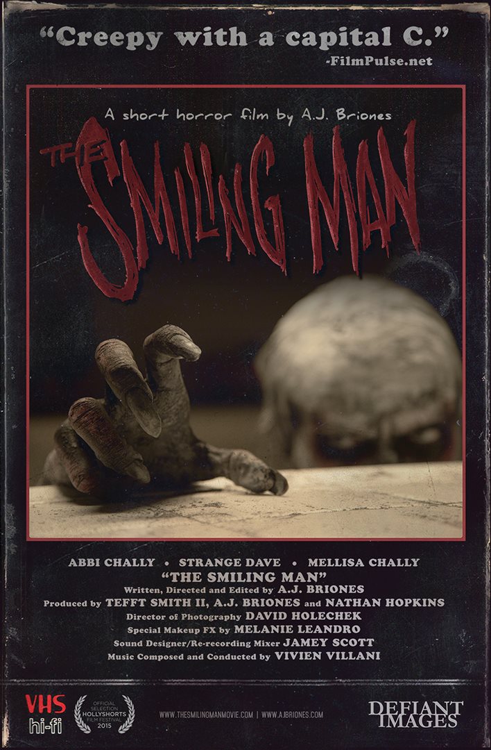 First off I’d just like to say thank you to Writer/Director, A.J Briones for allowing me access to an online screener of his 7 minute Horror short, “The Smiling Man”. I’ve made contact with a lot of different filmmakers through my interest in these types of short films. AJ was a contact I found through Gabriel Olson, a mutual contact and filmmaker who directed “The Bridge Partner” *see review *https://adamthemoviegod.com/the-bridge-partner-review/. The Smiling Man is about a little girl (played by Abbi Chally) who while home alone, comes face to face with a malevolent stranger (Strange Dave). The film also stars Mellissa Chally and The Smiling Man whose voiced by Richard Dorton. I was surprised when I saw the long list of credits to Briones name. Turns out he works as a visual effects artist and previsualization supervisor. His list of credits include “47 Ronin” another film I reviewed, plus “Dawn Of The Planet Of The Apes” and “Tomorrowland” just to name a few. It’s rare I get the opportunity to review a film made by someone who specializes in a completely different department.