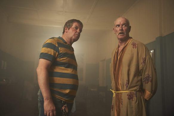 While I’m on the writing, Waller appears to have not only tapped into what makes us iconic Aussies us, but he seems to actually get it – and therefore the result feels sincere. He brings that dry and witty approach we know and love from the English but injects it into comedic gags that are relevant to our culture and lives. The opening scenes at the butchers in the UK kicks things off on a funny note, and so by the time we get to Australia the tone has already been set. The airport scene with Clive referring to “blades and pingas” got me going (haha) and a steady stream of one liners like “She’s cactus”, “Yeah,nah”, and “Starkers” (which is technically English) kept me chuckling throughout. The highlight, comedically speaking, comes in the form of a funeral scene where everyone delivers their best work and it’s hilarious. The musical timings, the speech, the power point presentation, and the burial are all sure to get even the most jaded of viewers lol’ing. The vast majority of Two Heads Creek is pretty low-key and certainly not something you’d describe as action packed. That said, things escalate come the third act and we’re treated to a big gnarly action sequence on the streets of the town. No real spoilers, but what I will say is that it ends in carnage and bloodshed. The practical blood and gore fx are impressive and there’s two or three quite graphic kills in the aforementioned sequence – the blood sprays in a big way and it’s good fun.