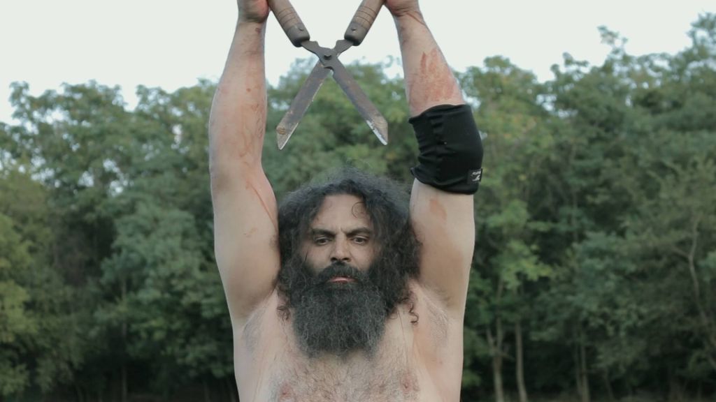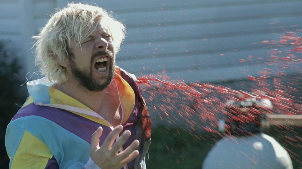I’ll start the negatives off with the gigantic watermark that’s firmly planted on the screen for the full one hundred minute runtime. I understand this probably isn’t a fault of the producers, but more so the distributors, though it’s certainly a distraction when permanently affixed. I wasn’t a fan of a lot of the cinematography or editing in this one. The color palette looks entirely blank and the DP immediately opts to break the 180-degree rule during an opening phone conversation, and from there shot choices don’t get a whole lot better. The film is also too long, a 75-minute runtime would’ve sufficed given the amount of repetitive sequencing. Certain scenes are introduced that never actually resolve, such as the group of thugs harassing a warehouse owner for money he owes and saying they’ll be back. The film’s score quite often feels too loud in the mix and the musical choices don’t appear to have any real fluency about them. Not to mention, the one death metal track (a genre I’m a fan of) that’s clearly been performed by a local band is just plain bad. By far and away the biggest issue with Wrestlemassacre lies with the bulk of the performances which are incredibly stiff. Now, I’m a realist, and I understand that this is low-budget, DIY filmmaking so I’m not going to pick apart all these individuals one by one. That said, here’s an example of the standard. Julio Fernandez plays Owen, who owes a crew a large sum of money and they’re threatening violence and rape and all that fun stuff if he doesn’t cough up. So here I am thinking he should be fearful throughout most of the film, right? Wrong. He can’t seem to form an anxious expression and is actually more often than not seen holding back a laugh during a number of scenes. To boot, there’s an extremely cringe-worthy cameo from YouTuber/Actor, Shawn C. Phillips that really doesn’t make any sense but stems from scenes where Randy sits and watches infomercials (an example of more footage that could’ve been cut).